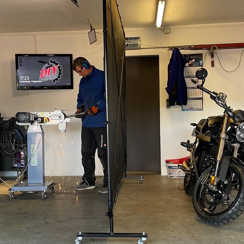 Hier möchte ich euch mein neues Projekt vorstellen das ich aus einer Schweißschutzdecke selber gebaut habe. Es dient mir als Schweißvorhang und schützt somit meine Wertgegenstände in der Werkstatt vor Schweißspritzern. Die Konstruktion ist auf einem Alten Trampolin entstanden und ist so wie häufig bei mir ein Upcycling Projekt.