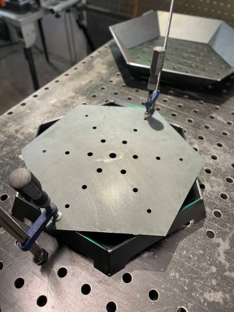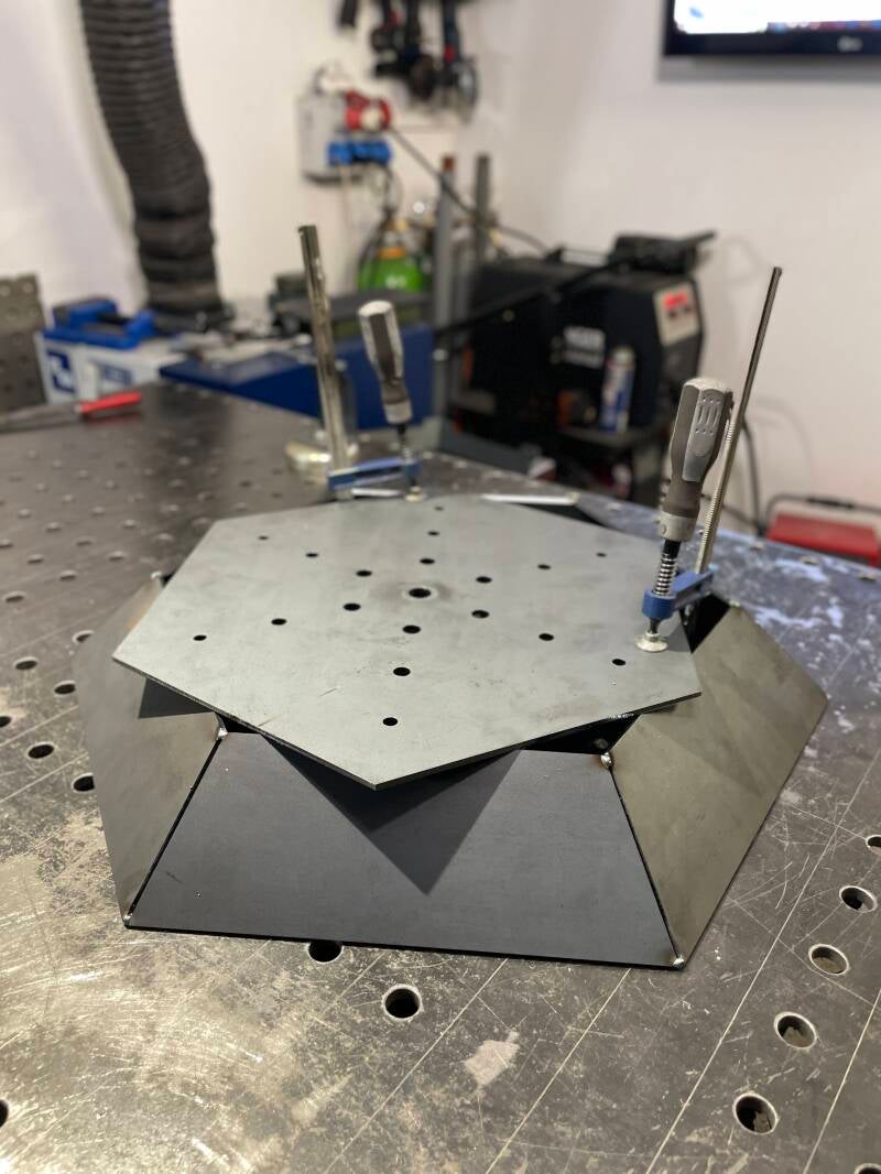 Beachten Sie den eventuellen Verzug des Materials beim Schweißen. Wenn möglich verspannen Sie die Konstruktion auf Ihrem Schweißtisch um ein Wölben der Grundplatte zu vermeiden.